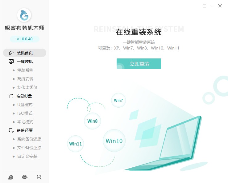 1.退出杀毒软件打开“电脑重装系统软件”,点击 “立即重装”,等待电脑重装系统软件检查电脑安装环境完成。