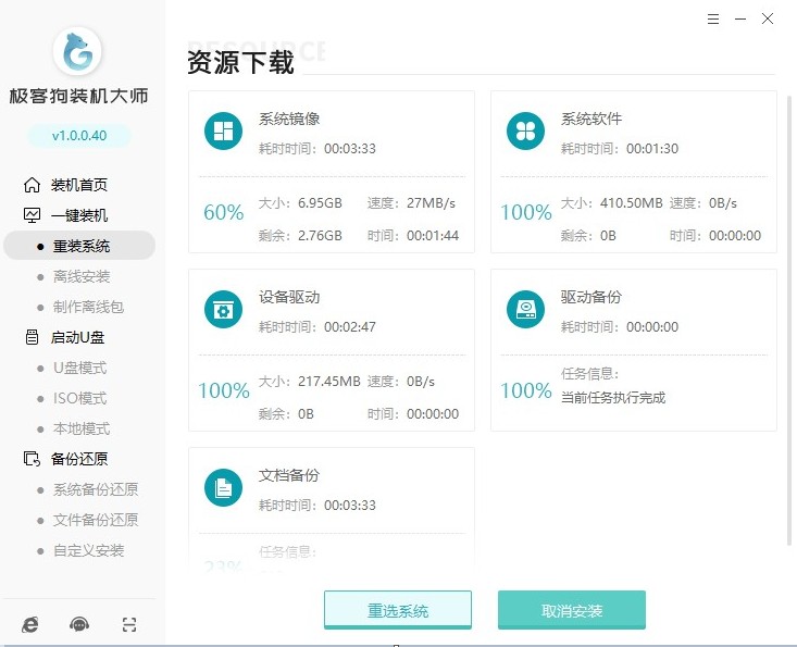 5、资源下载中,自动下载我们选择的系统文件、系统软件等等,请耐心等待。
